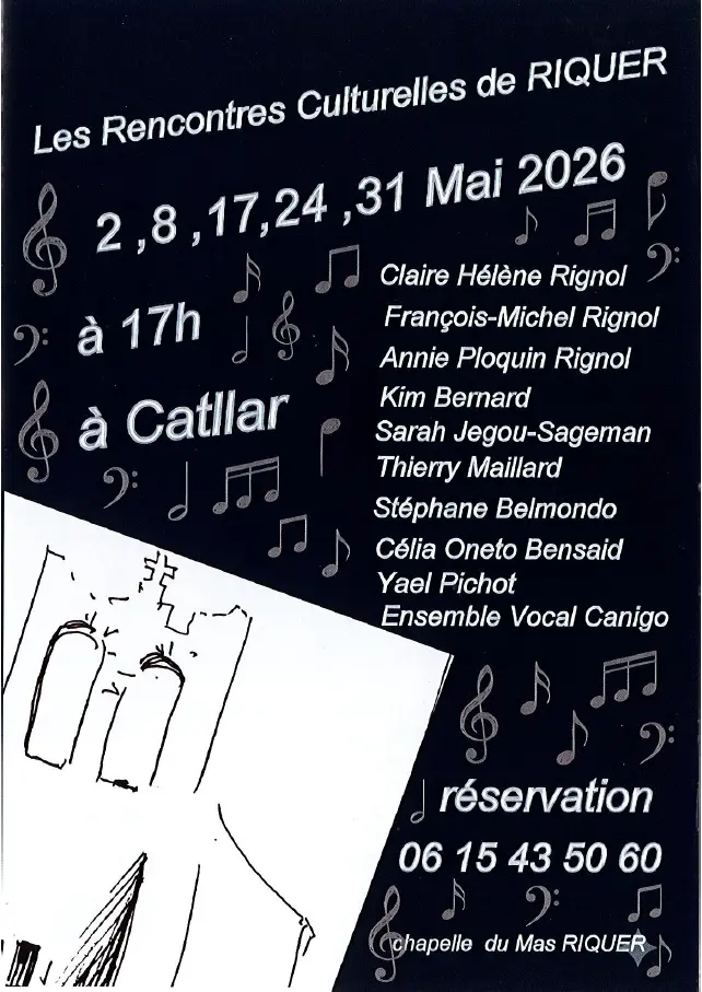 Les Rencontres culturelles de Riquer vous donne rendez-vous pour sa 29ème édition lors d'un moment de partage musical et artistique avec une série de concerts au sein de la chapelle romane du Mas Riquer à Catllar. Au programme, un répertoire varié reprenant les chefs-d'œuvre de la musique classique, baroque et contemporaine. Uniquement sur réservation au 06 15 43 50 60.