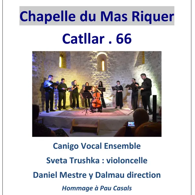 Le 31 mai à 17h : Canigo Vocal Ensemble, Sveta Trushka (violoncelle) et Daniel Mestre y Dalmau Direction. Hommage à Pablo Casals.