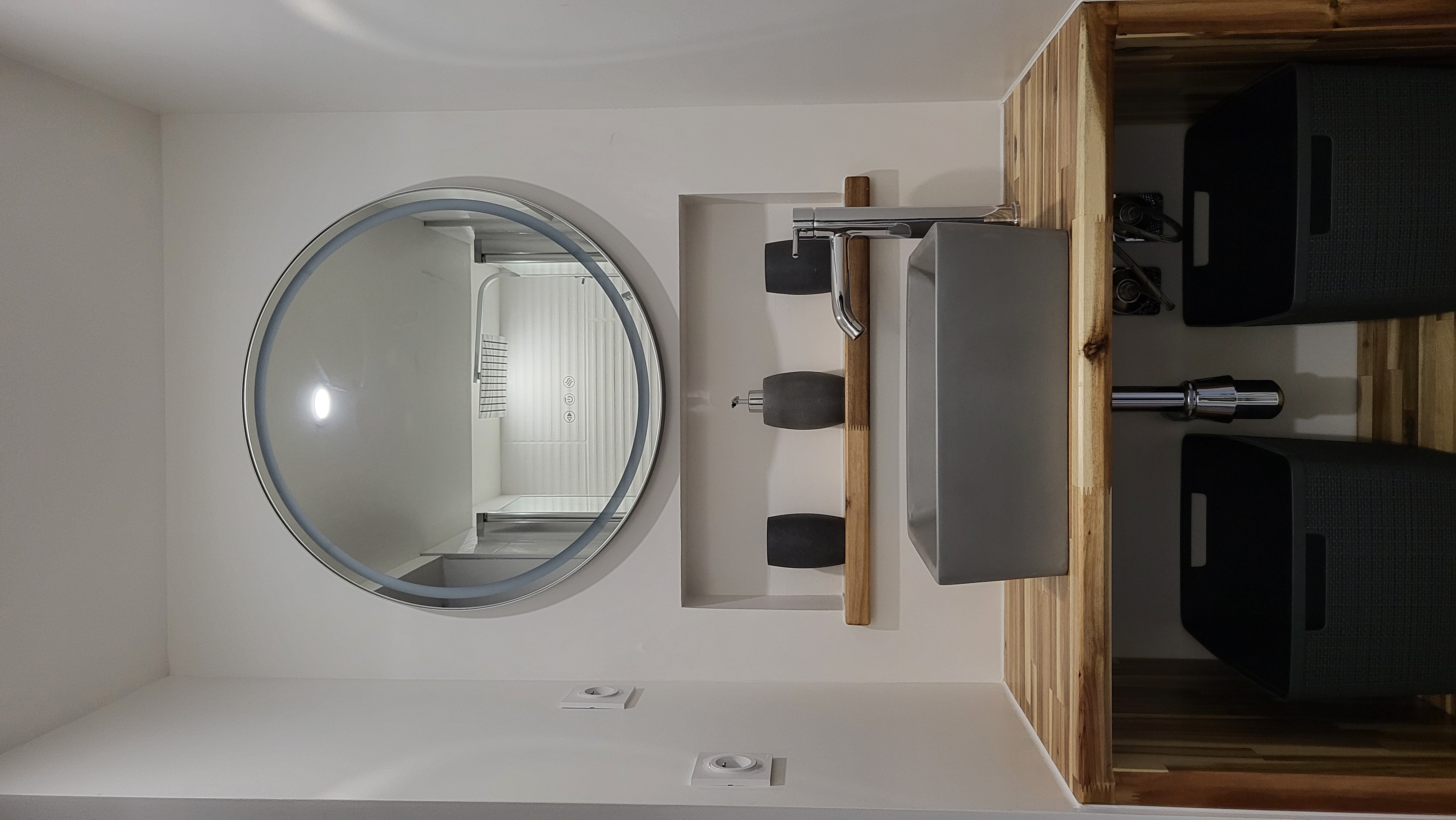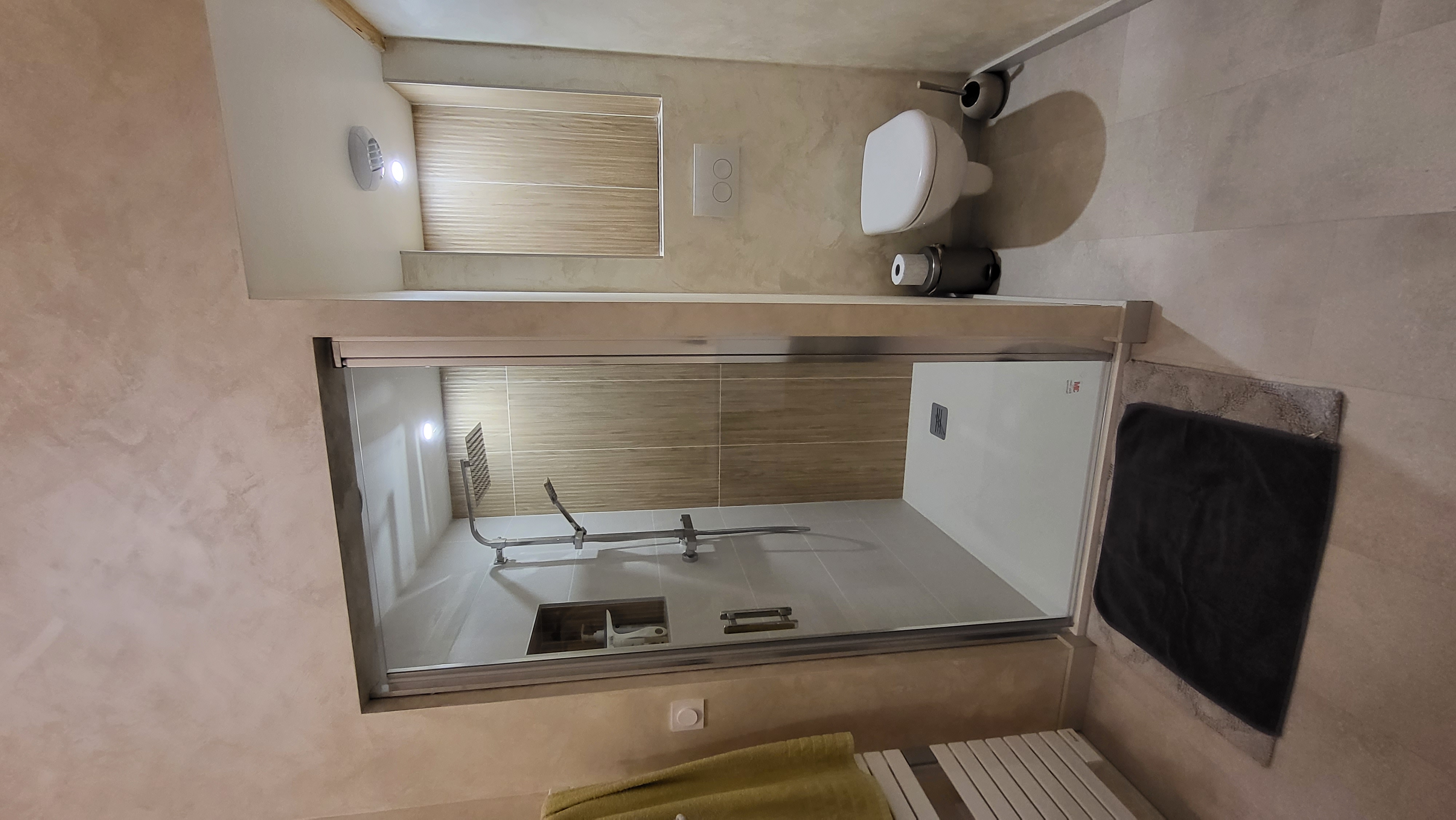 - Une chambre avec 2 lits de 90 avec lavabo et douche
